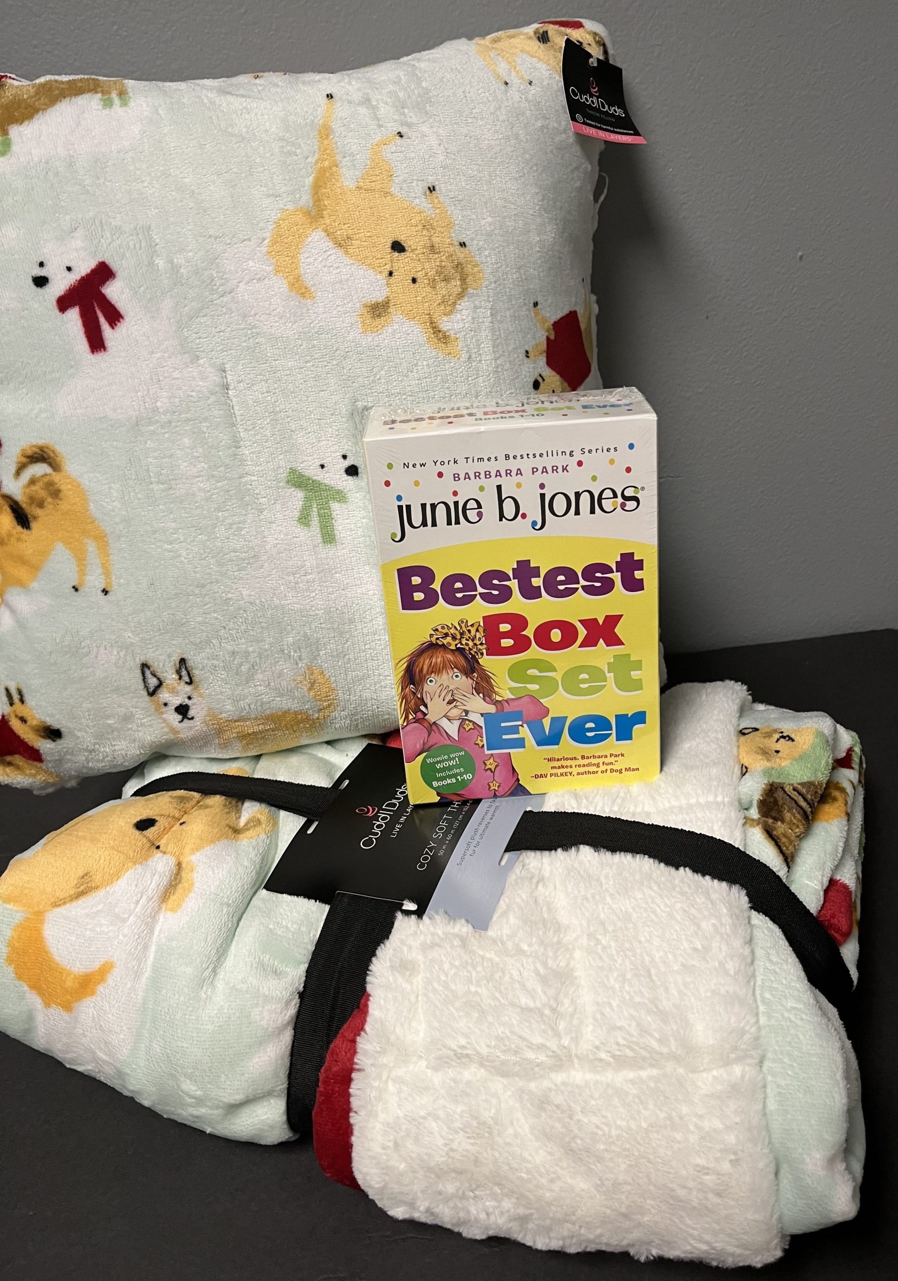 This package will help you relax and unwind in comfort. You will receive 3 autographed books (Mistaken Identity, Weight of Water, See Jane Run!), 2 wine glasses, bottle of 2022 Tapestry Red Blend, candle and a blanket.