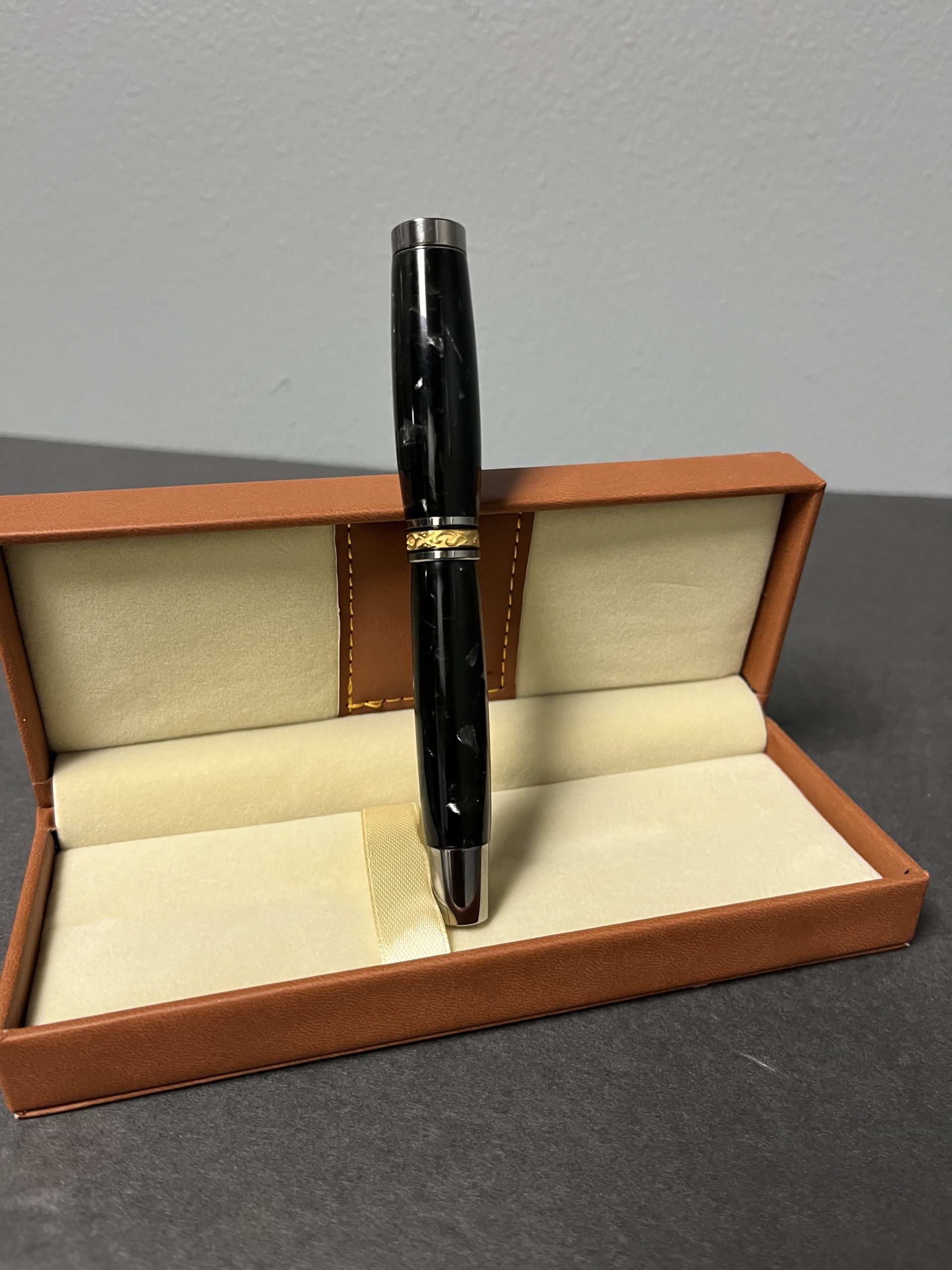 This attention getting pen was custom made for Mentor Iowa. The last pen maker of the Midwest (Ron Beers – owner of Quill & Nib in Valley Junction) created this one-of-a-kind masterpiece. Chuck Kuba, owner of Iowa Diamond had the pen designed and enhanced with a 10 pt diamond (appraisal included) inset in the cap. In a digital age this pen will be a timeless fine art piece to keep and treasure forever.