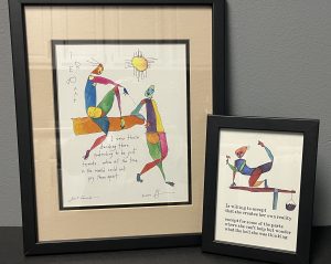 Just Friends (measures 11 x 14) and New Age (measures 5 x 7) are fun whimsical prints from Story People. Story People is based in Decorah and has been touching many emotions through their prints and sayings.