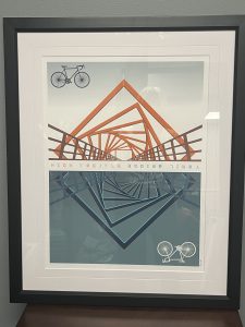 Biking, walking or just soaking in this stunning bridge between Madrid and Woodard brings joy. John Bosley with Bozz Prints created this print and is custom framed. 24 x 30. Get your wall ready in your office or we-shed for this one.