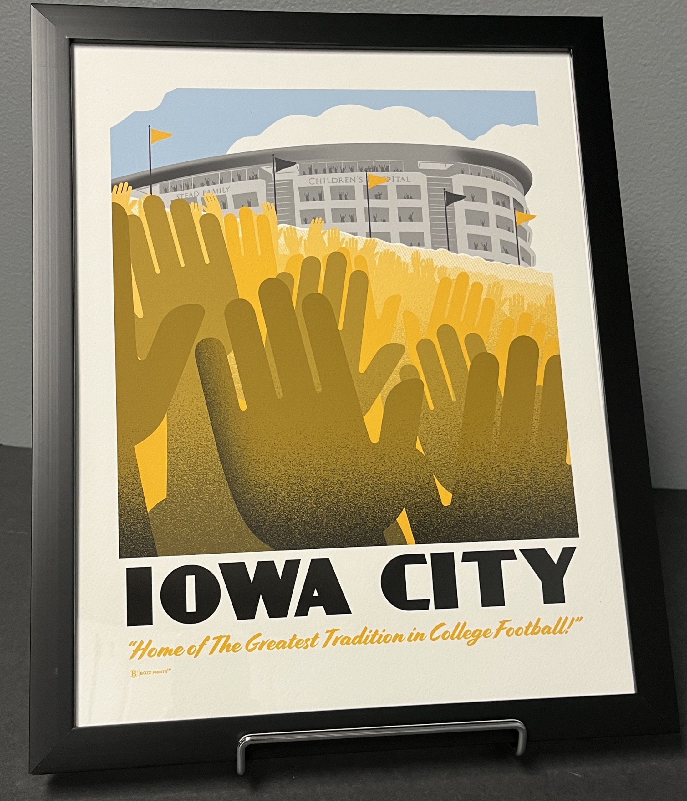 2017 was the start of the “Hawkeye Wave” connecting fans with young patients at the U of I Stead family hospital. John Bosley has captivated this feel love moment in this 11 x 14 framed print.