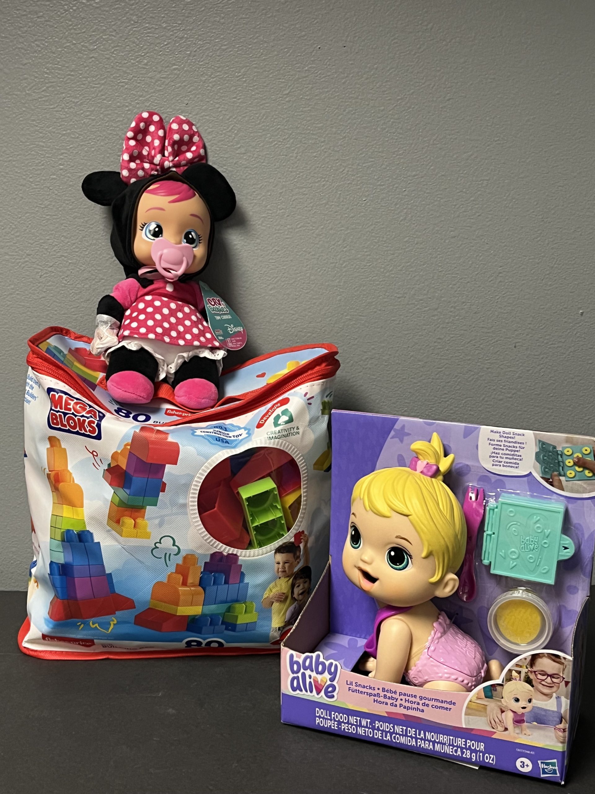 Imagine your 80 pc Fisher Price blockset building a crib or chair for your Baby Alive and Disney Cry Baby. Generate wonderful memories and fun for you and your little when you win this package.