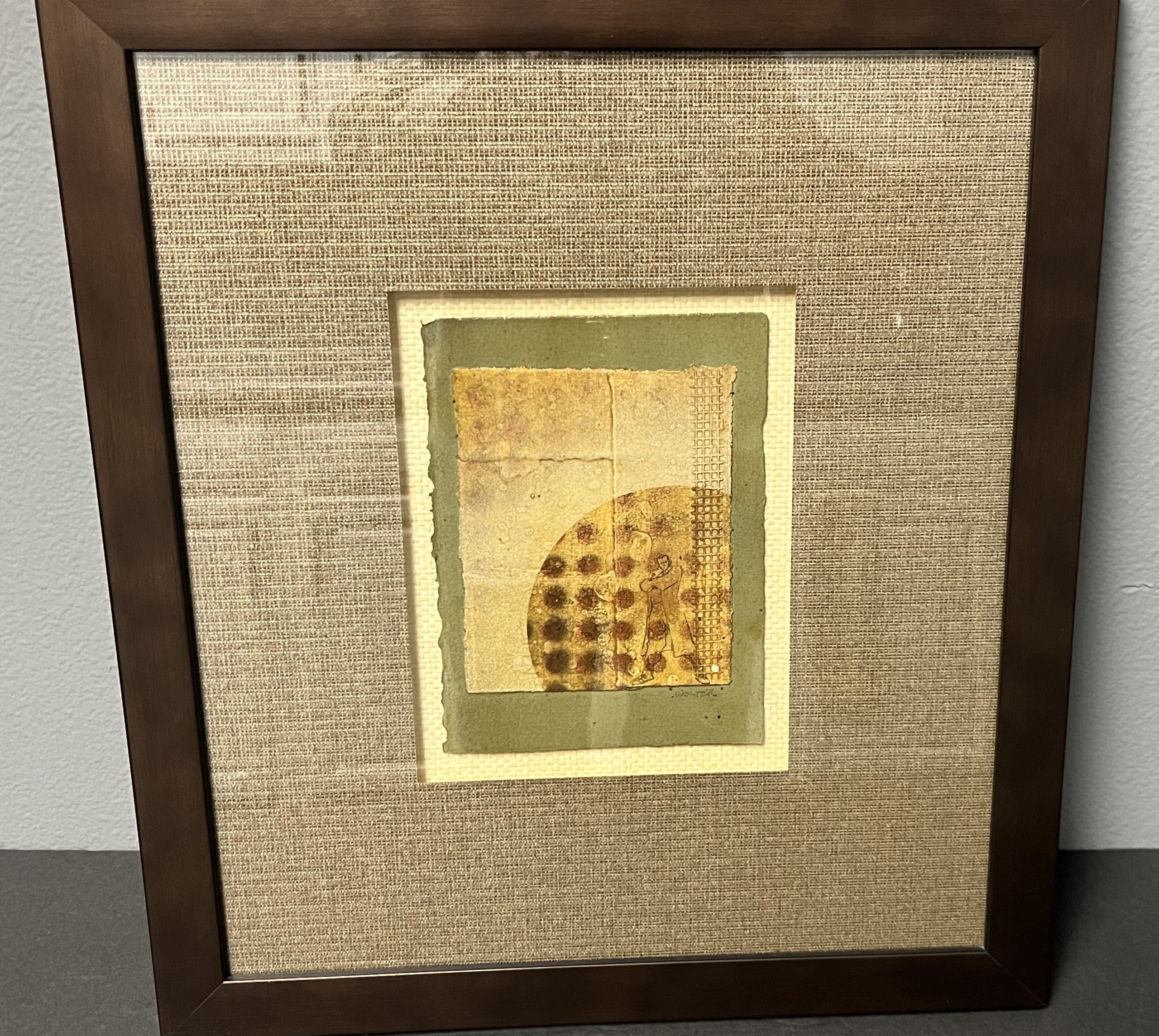 Shawn Wolters is a mixed media local artist who created this abstract oil piece. Professionally framed and floated on a mat to become 15 x 17. If you look close you will see the MAN!!