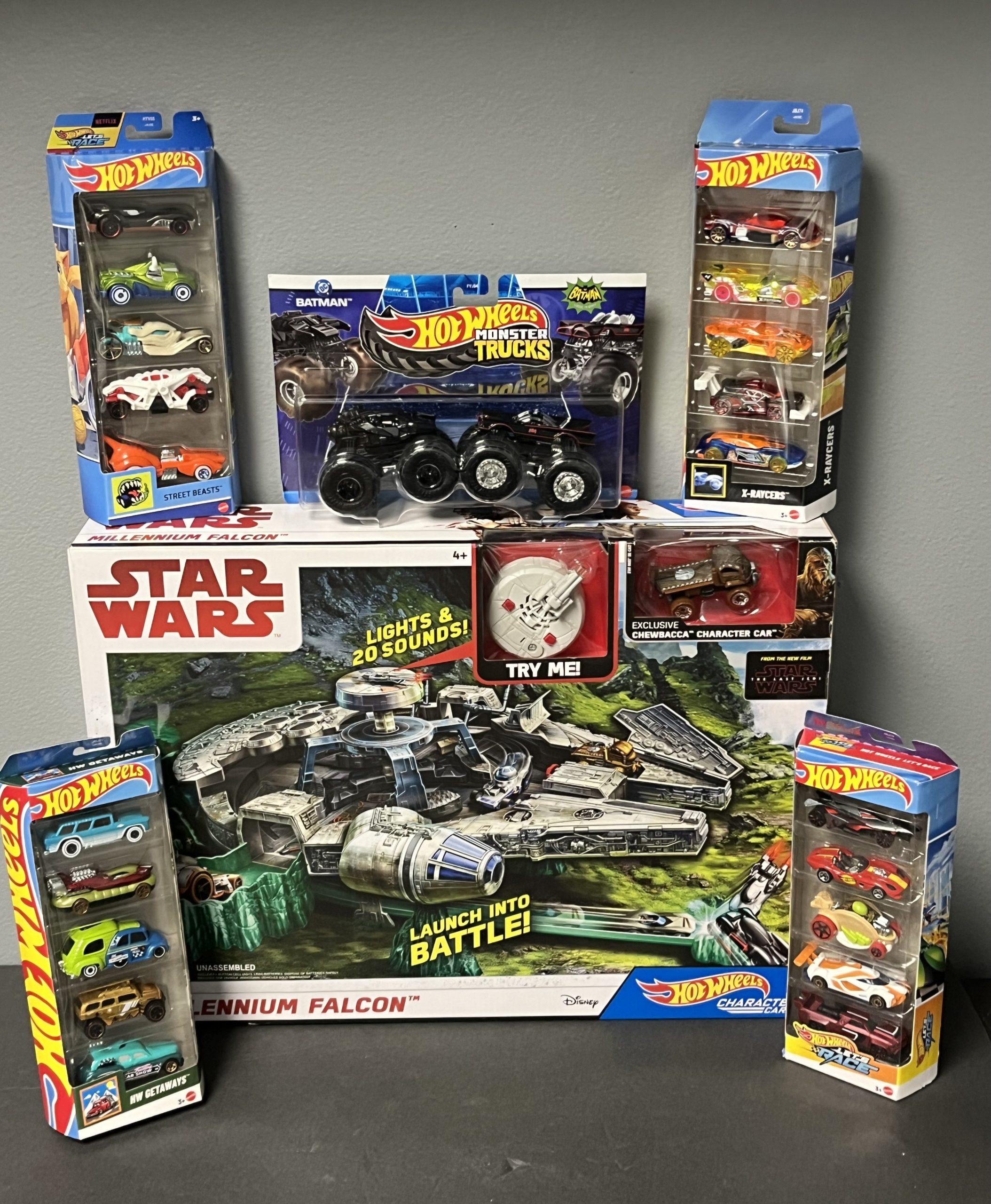 The need for speed happens with the Hot Wheels package. Included in this package is a Millenium falcon track set along 4 sets of 5 cars including: Speed Beast, Let’s Race, Hot Get Away and X-Raysers. Last but not least you will receive a Batman 2-pc monster truck set that will help you cross the finish line 1st.