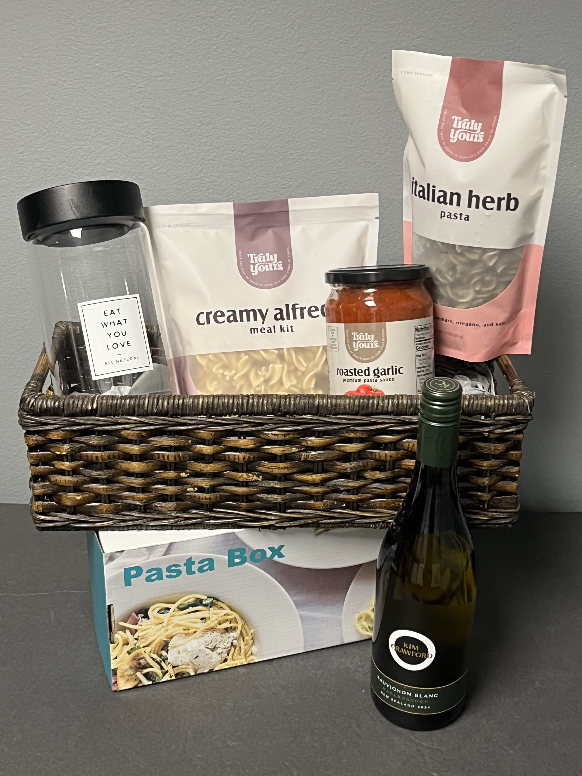 No time to cook and need to eat. This Pasta box will microwave your noodles fast!! Choose from a Truly Yours Alfredo kit or Italian herb pasta and all you need to do is add the roasted garlic sauce. Open your bottle of wine and Presto, dinner is served!