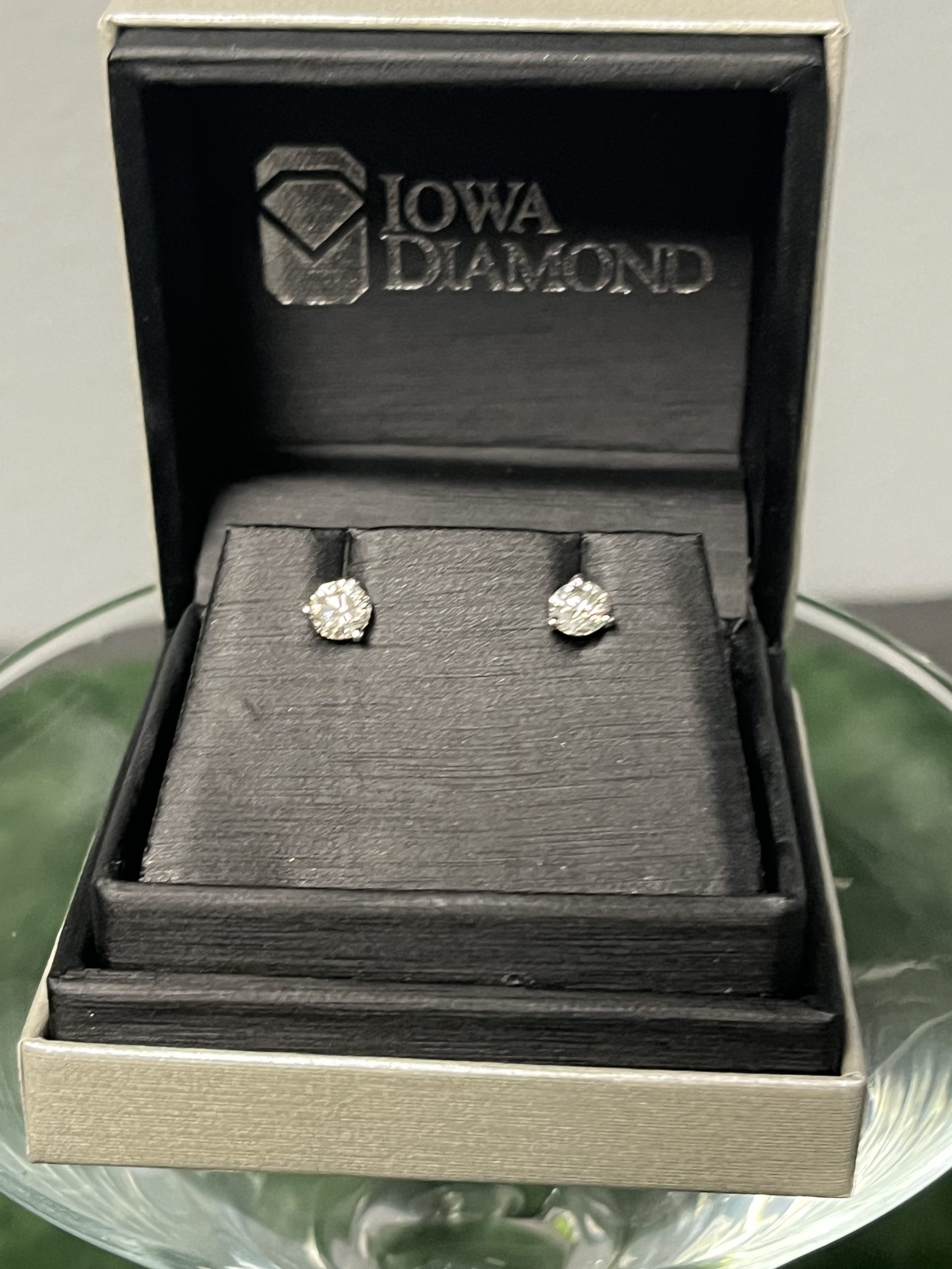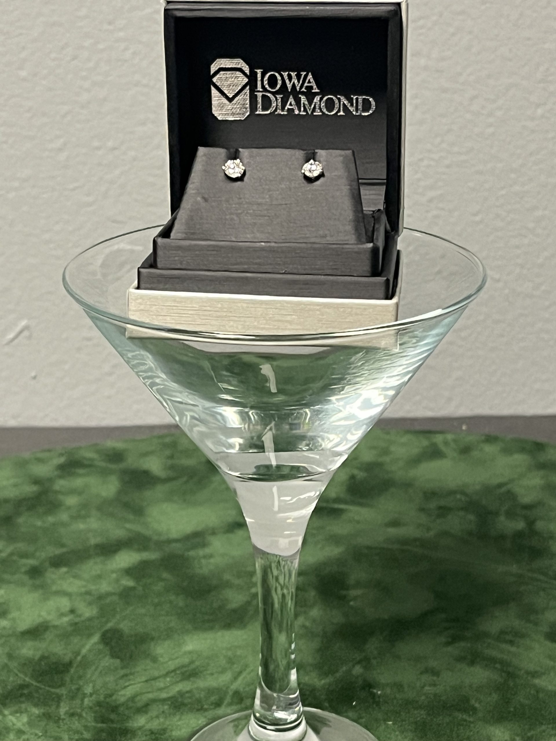 Elevate your style with these stunning 3/4 carat total weight, lab created diamond martini stud earrings. These eco-friendly, 14k white gold settings are set close to the ear for the maximum comfort, sparkling and a secure modern look.